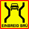 | Merki þetta er notað með viðvörunarmerki til að vara við einbreiðri brú. Hér gildir reglan að sá sem kemur fyrstu að einbreiðri brú á forganginn. |