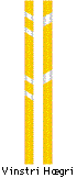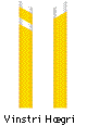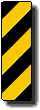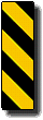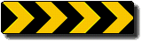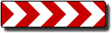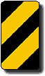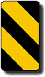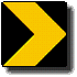 | Þegar stefna vegar breytist og aðstæður bera það ekki greinilega með sér má setja við vegarbrún merki með svörtum og gulum skástrikum sem mynda örvar í akstursstefnu. | |