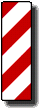 | Svart- og hvítröndótta vegskildi má nota til að afmarka akbraut í jarðgöngum. Rendur skulu halla að akbraut. | |