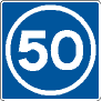 | Merki þetta er notað með nokkrum viðvörunarmerkjum (A) og sýnir þann hámarksökuhraða sem er ráðlagður á þeim vegarkafla sem viðvörun nær yfir. Það þýðir að þú ert kannski á 90 km götu en samt er ráðlegt að fara ekki hraðar en 50. Oftast sett þar sem vegsýn er stutt og hættulegar beygjur framundan. Tveir síðustu stafir í númeri tákna tilgreindan hraða. Þannig hefur merkið sem hér er sýnt númerið J09.50 |