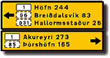 | Merki þetta má setja við vegamót. Letra skal staðarheiti eða sveitar á merkið, svo og vegnúmer og fjarlægð í km eftir því sem ástæða þykir til. | |