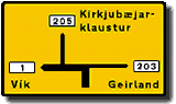 | Merki þetta má setja þar sem frárein byrjar. Letra skal staðarheiti og vegnúmer á merkið eftir því sem ástæða þykir til. | |