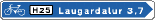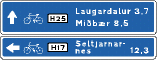 | Merki þetta má setja við stígamót. Letra skal staðarheiti, stígnúmer og fjarlægð í km með einum aukastaf á merkið eftir því sem ástæða þykir til. |