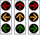 | Ljósmerkið getur verið með ljósopi fyrir rauða, gula og græna ör. Ljósörvar eru að jafnaði notaðar í tengslum við almenn umferðarljós, þannig að ljósop fyrir sama lit eru venjulega hlið við hlið. Ljósörvar gilda fyrir þá vegfarendur sem ætla að aka í þá átt sem örin vísar. Hjólreiðamaður sem ætlar að beygja til vinstri og á samkvæmt 3. mgr. 39. gr. umferðarlaga að fara beint áfram yfir vegamótin skal því fara eftir þeim merkjum sem gilda um umferð beint áfram. | |