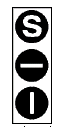 | Ljósmerkið skal vera með hvítu ljósi í öllum þremur ljósopum. Efsta ljósið jafngildir rauðu ljósi á almennum umferðarljósum, ljósið í miðju jafngildir gulu ljósi og neðsta ljósið jafngildir grænu ljósi. Ljósmerki þessi gilda fyrir strætisvagna og áætlunarbifreiðir | |